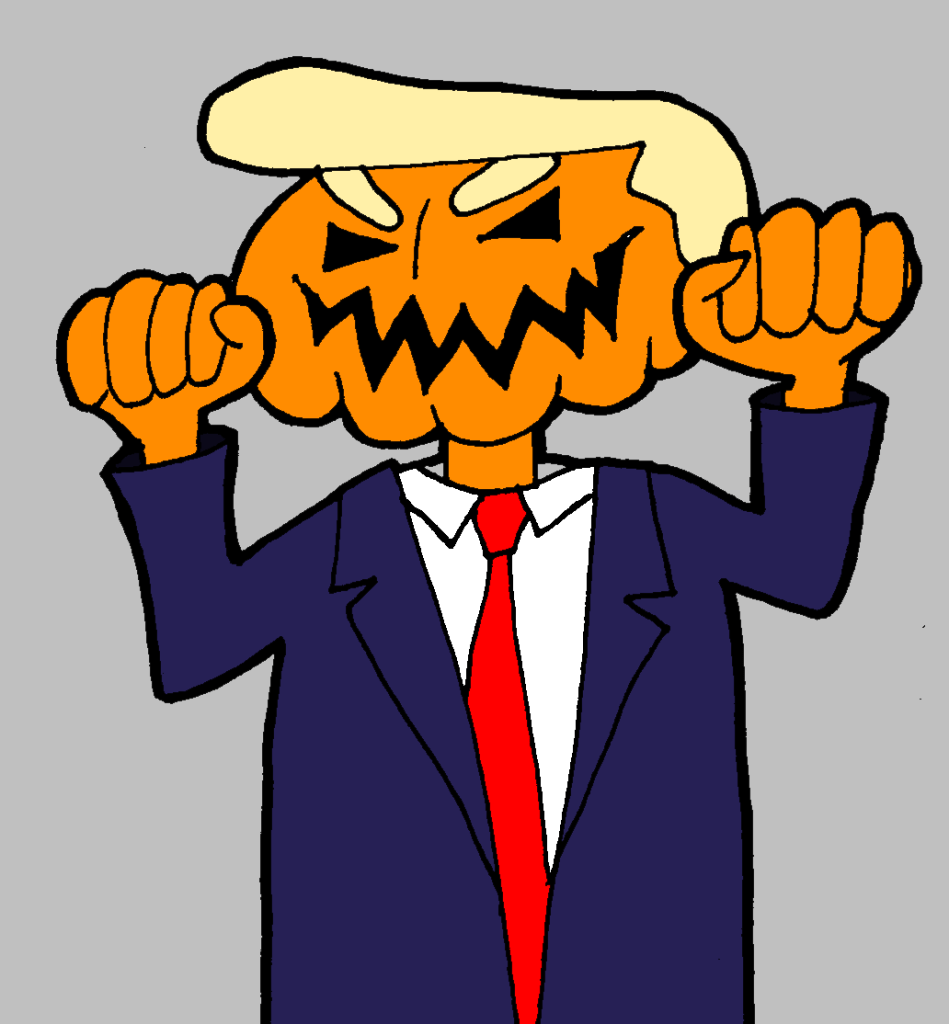 His awful orange swaying heft